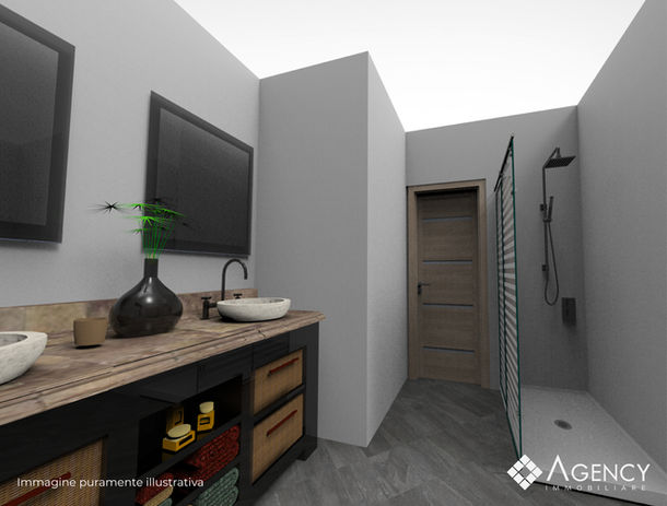 Il piano primo, di circa 50m², ospita un open space luminoso, la terza camera, che può diventare in alternativa uno studio, una zona hobby o un’area giochi.