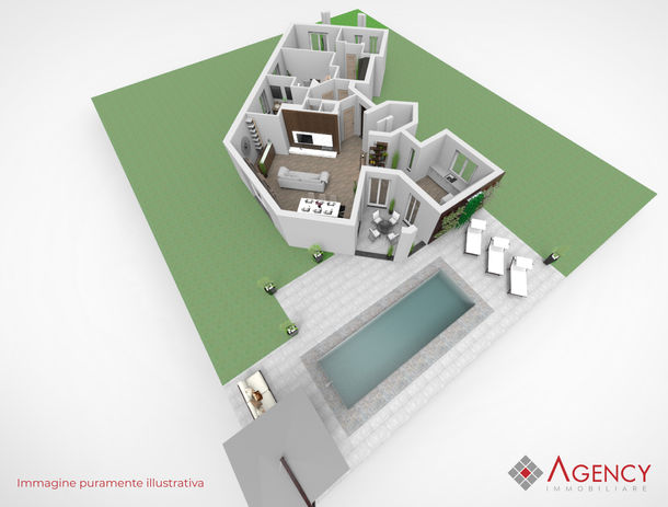 Ampio giardino riservato, piscina, box doppio in larghezza e gazebo.